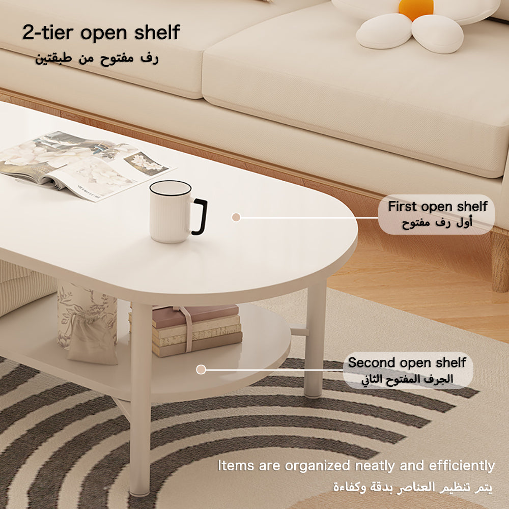طاولة قهوة مزدوجة الطبقة مع رف مفتوح