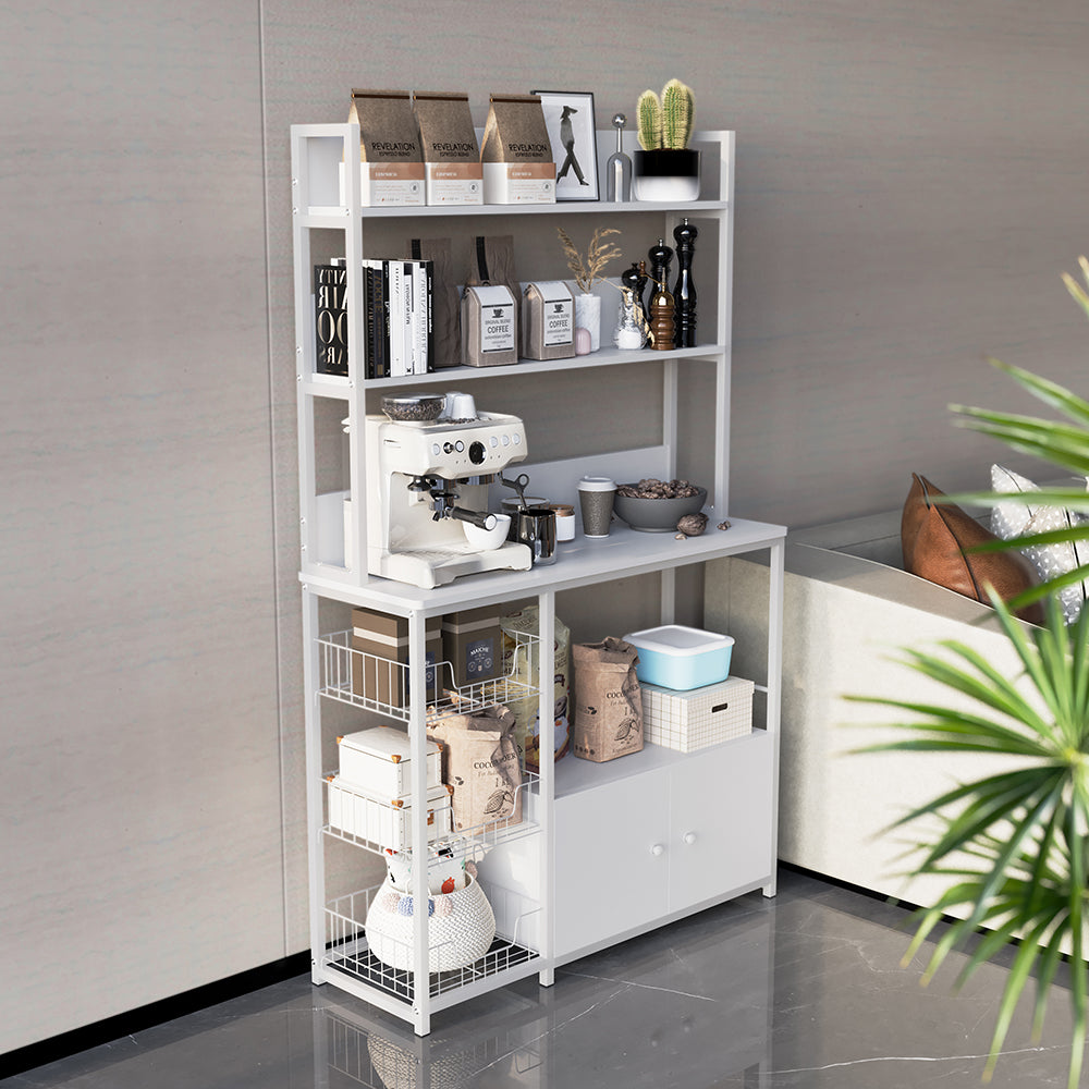 - تتميز بمزيج رائع من أرفف التخزين المفتوحة والخزانة مع أرفف مخفية من طبقتين