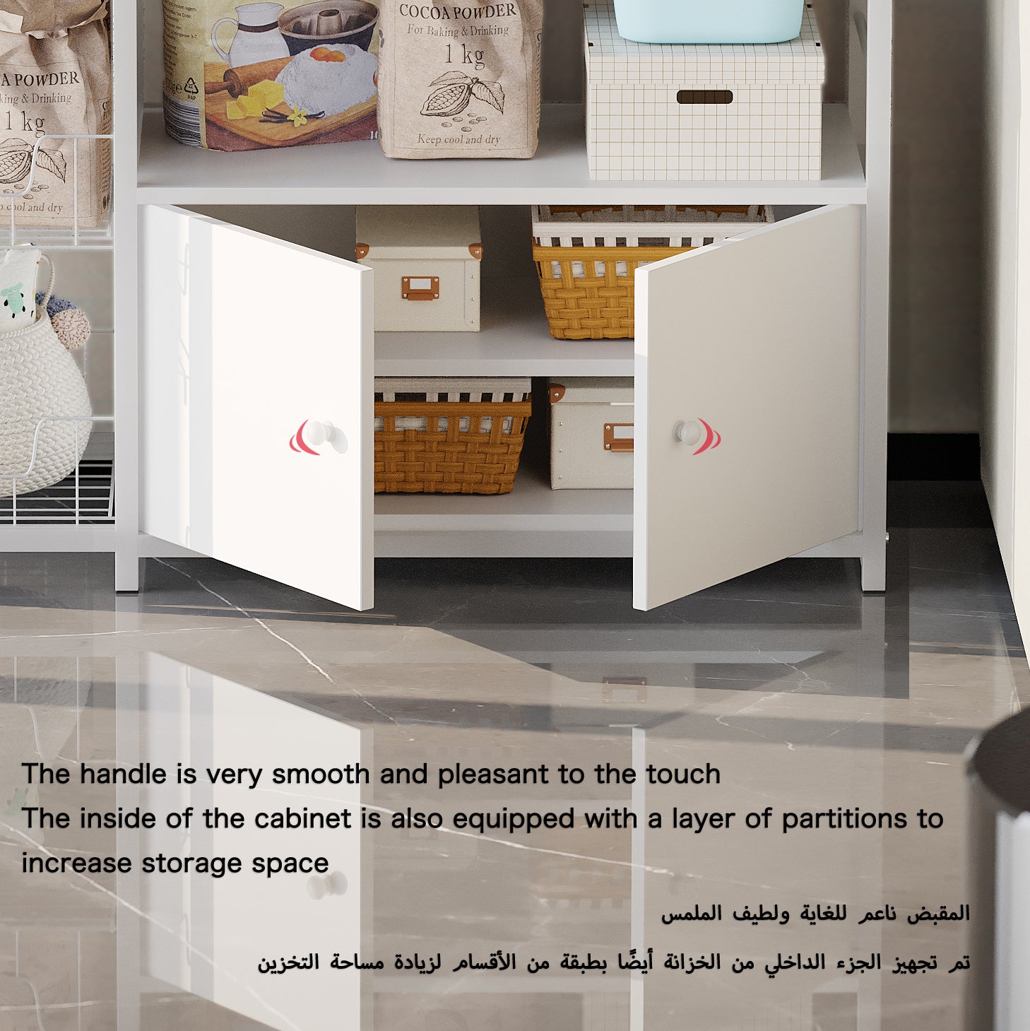 - للحفاظ على كل شيء في مكان واحد ومحمي بشكل جيد، تم تصميم هذه الخزانة بثلاثة أرفف مفتوحة