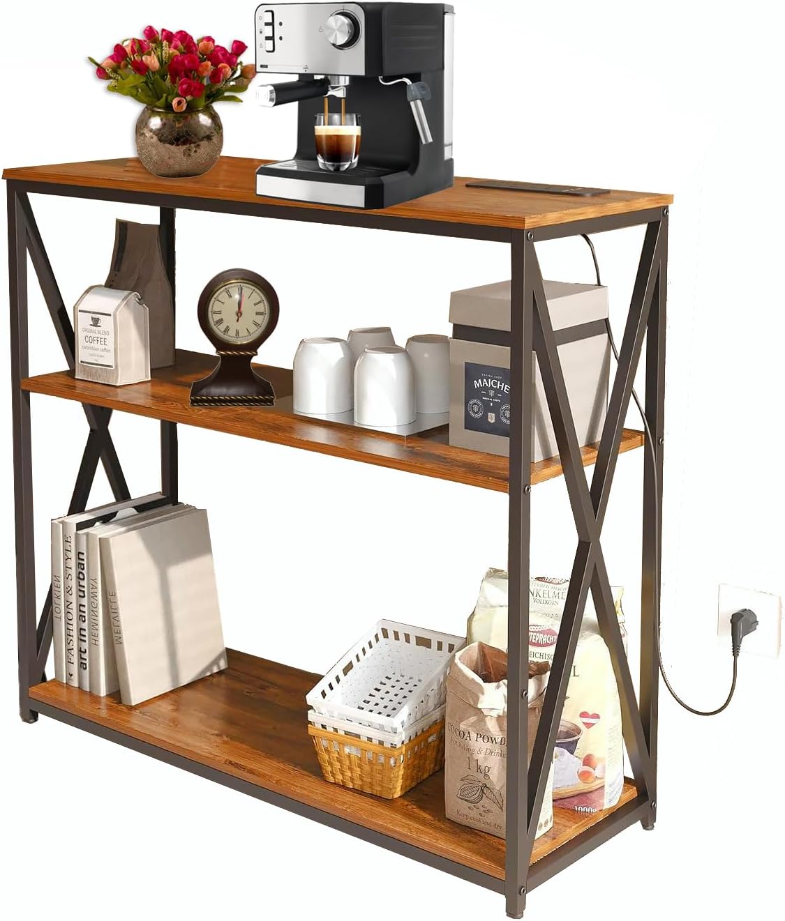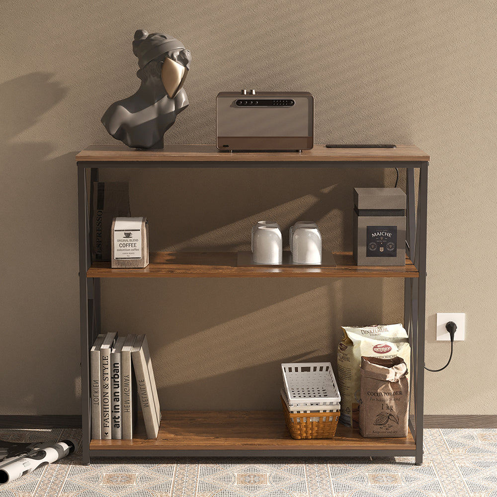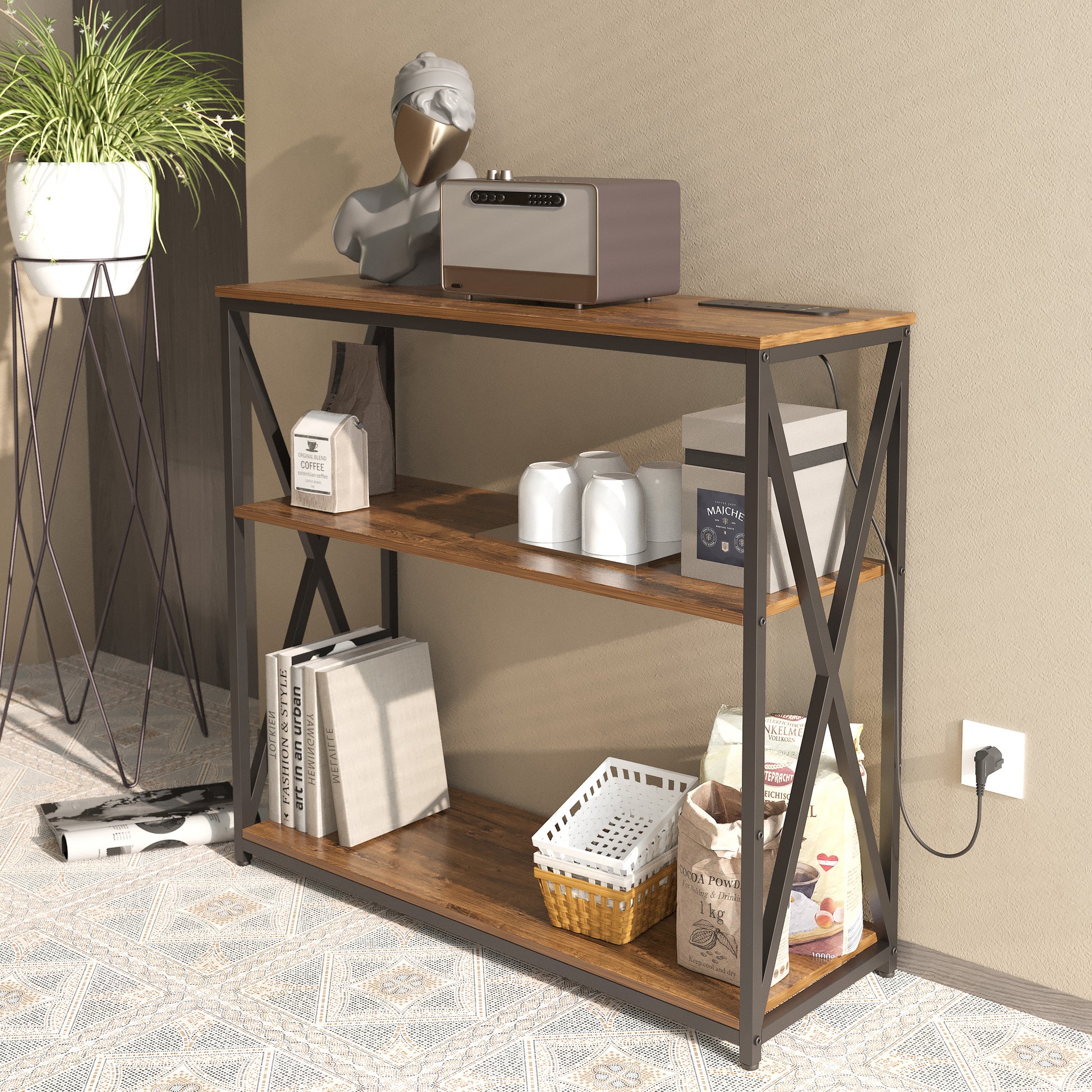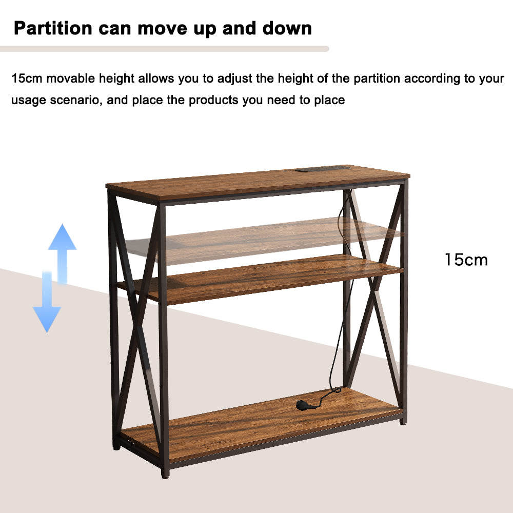 طاولة كونسول مع منفذ طاقة، طاولة أريكة قابلة للتعديل مع رف تخزين وطاولة مدخل