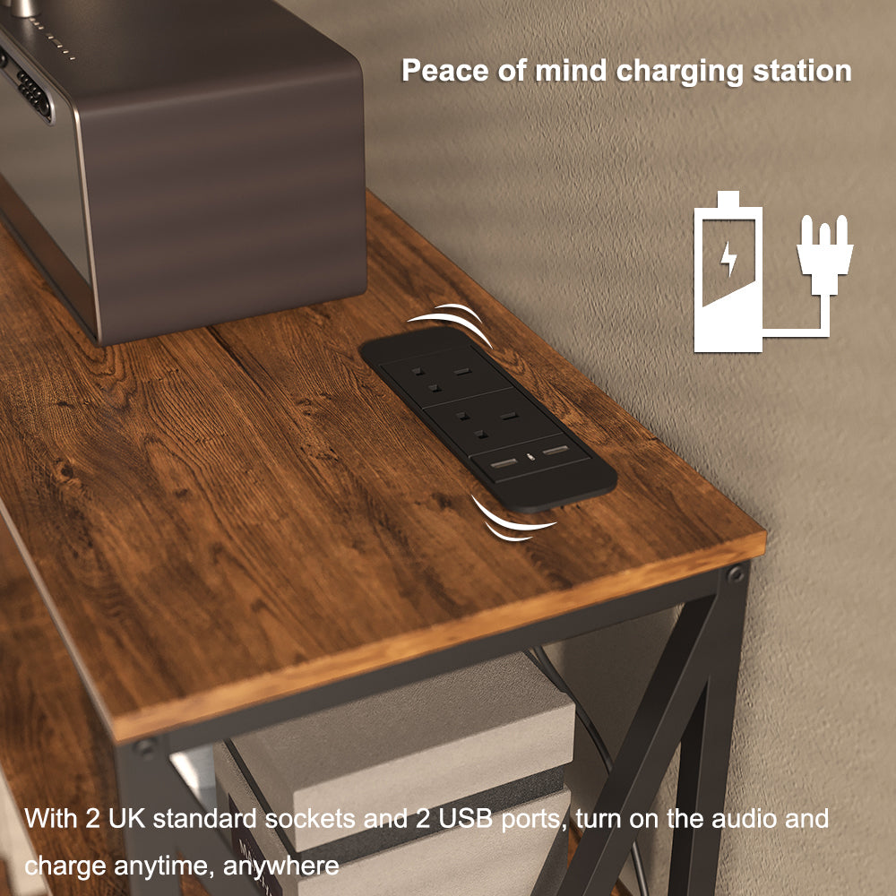 【طاولة أريكة مع محطة شحن】 2 منافذ توصيل قياسية في المملكة المتحدة ومنفذي USB ومنفذ Typc C مع سلك إمداد طاقة بطول 1.8 متر، مما يساعدك على شحن هاتفك والكمبيوتر اللوحي والمصباح ووحدة التحكم في الألعاب في نفس الوقت.