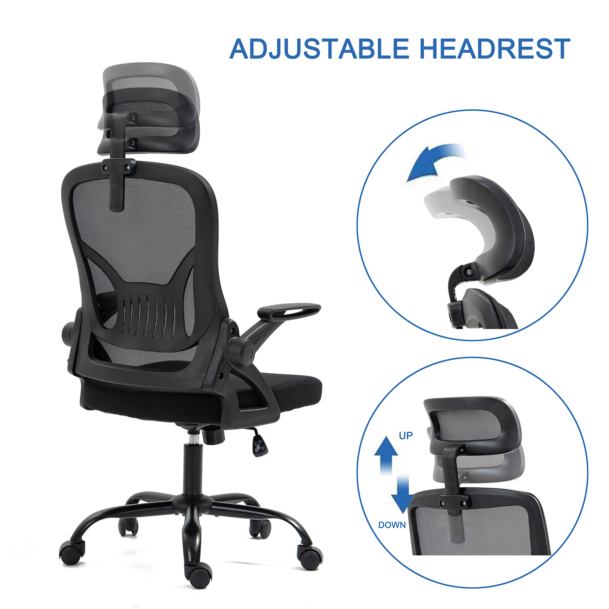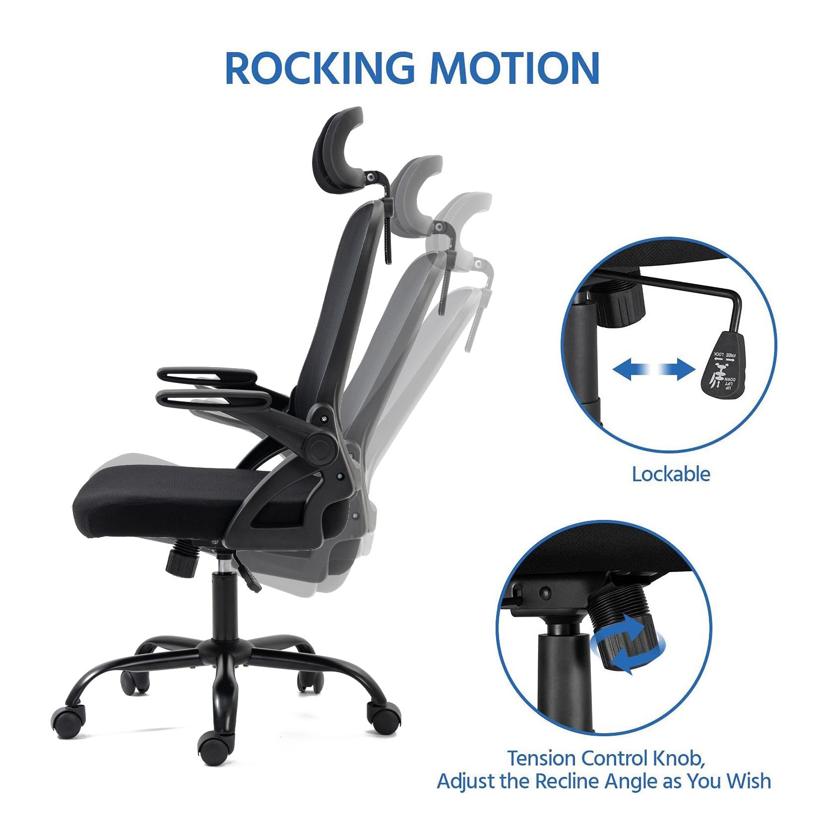• 【توفير المساحة】يمكن لكرسي المكتب المزود بمساند للذراعين القابلة للطي أن يزيد من توفير المساحة ويحافظ على غرفتك مرتبة ونظيفة. سواء كنت في المنزل أو المكتب، يمكنك قلب مسند الذراع لأعلى ووضع كرسي المكتب المنزلي أسفل المكتب.