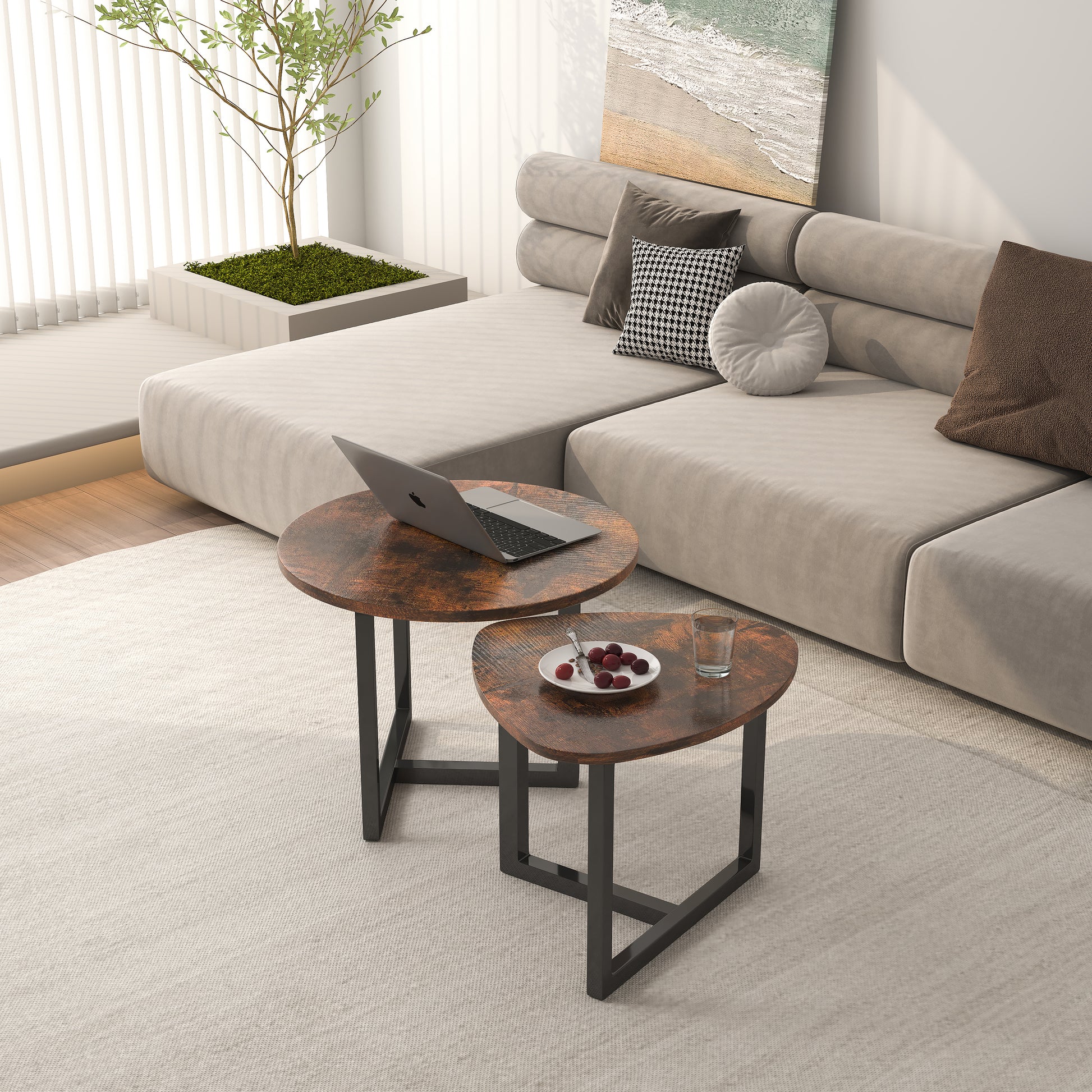 - يوفر لك الجمع بين قطعتين من طاولة القهوة طريقة جديدة لوضع طاولة القهوة. يمكنك اختيار استخدامه معًا، أو تفكيكه ووضعه بشكل منفصل