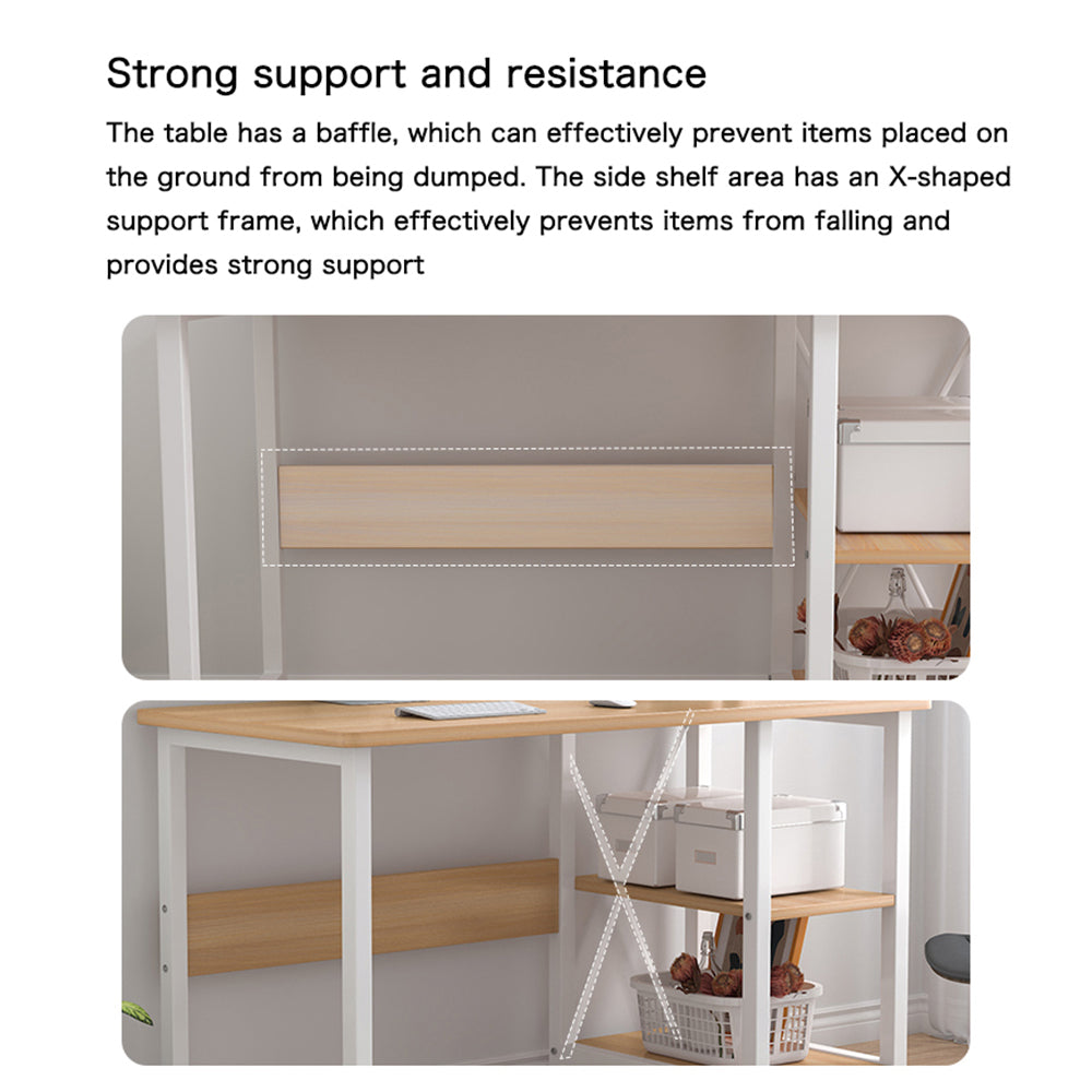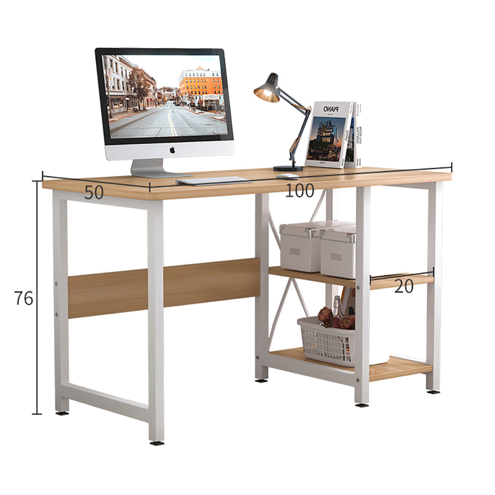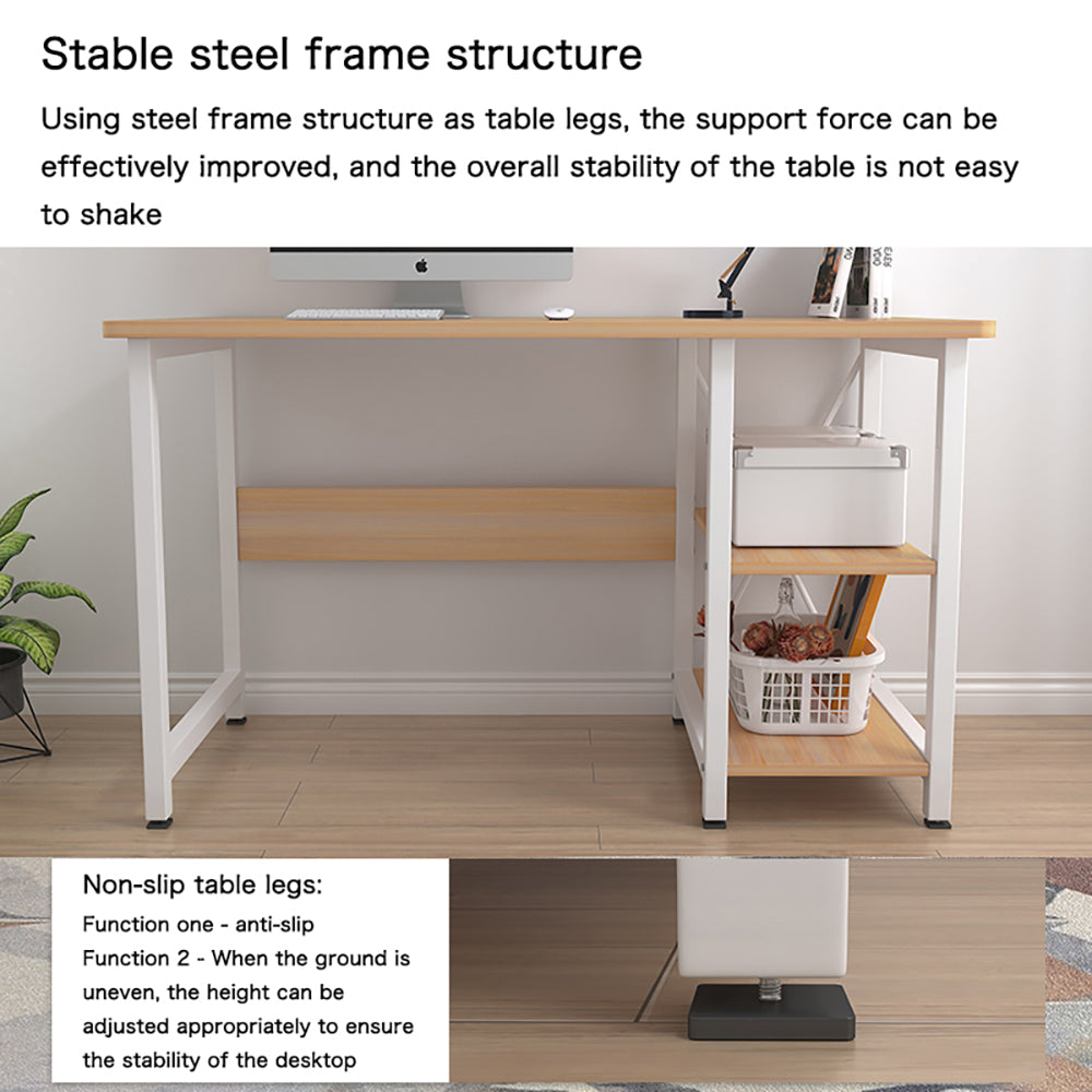 - يوجد رفان مقاس 20*50 سم أسفل الجانب الأيمن من المكتب، يمكن استخدامهما لتخزين الأشياء المتنوعة والمستندات، وهما مناسبان جدًا للاستخدام في المكتب أو في المنزل