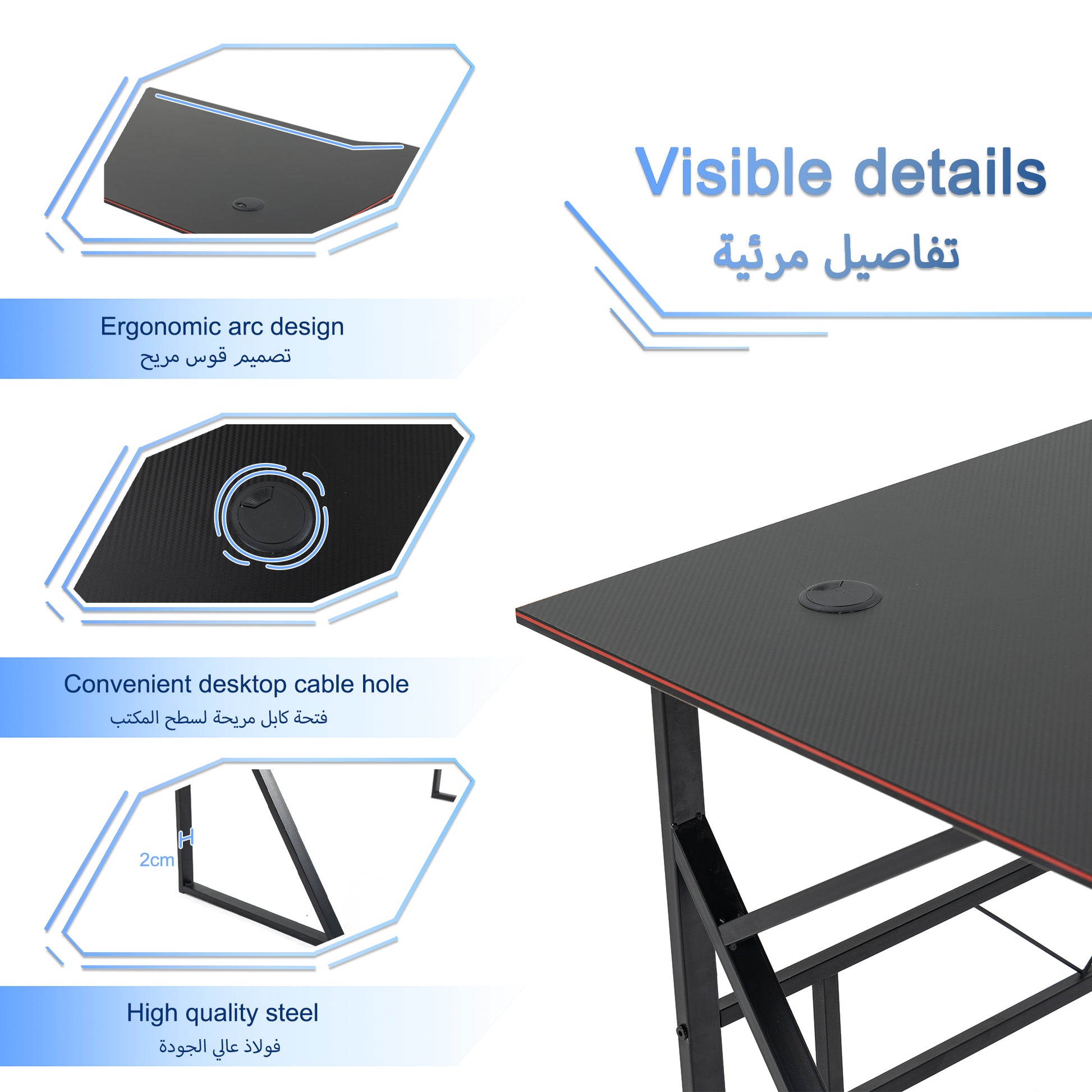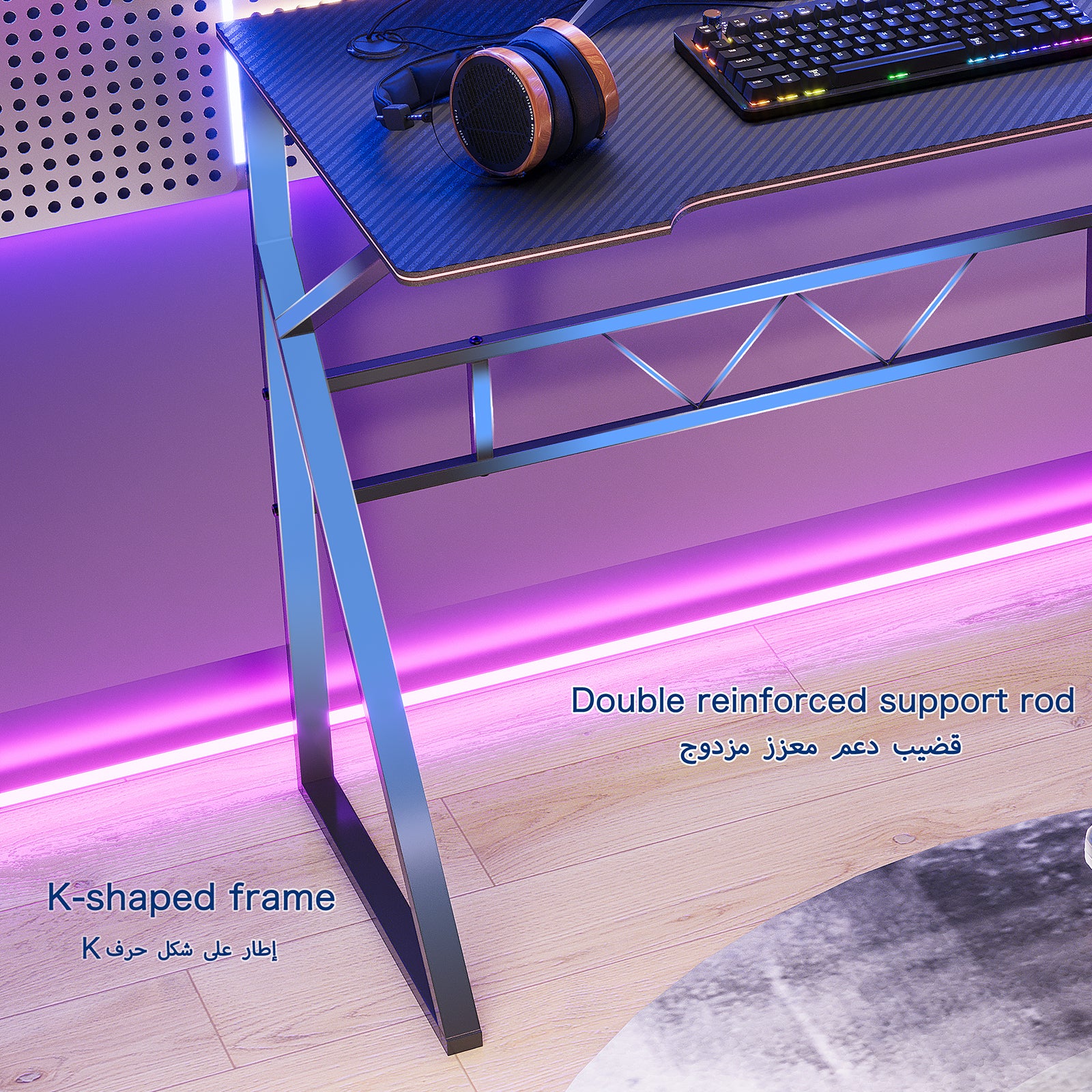 【إطار ثابت】يحمي أرضيتك من أي ضرر/علامات محتملة ويساعد على تحقيق التوازن العام. إطارات فولاذية على شكل حرف K لهيكل قوي ومتين. يمكن استخدام مكتب الكمبيوتر هذا كمكتب ألعاب ومكتب مكتب منزلي.