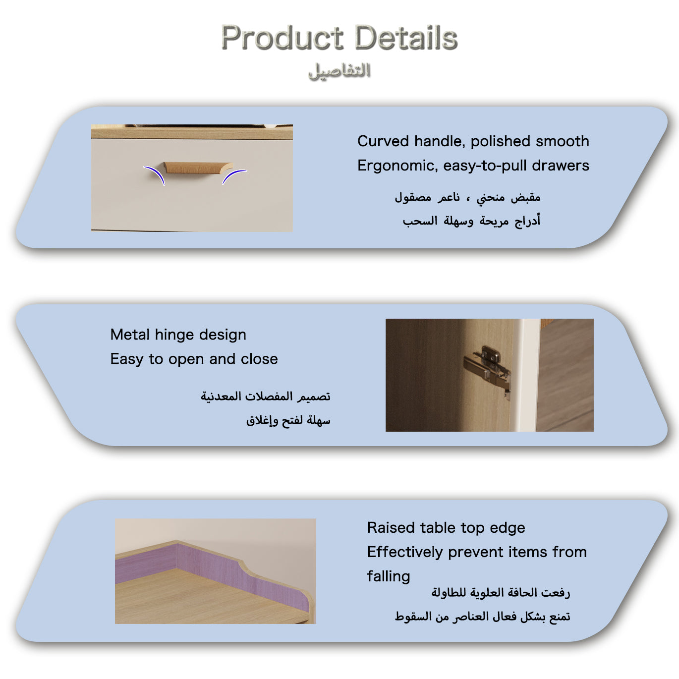 - مصممة بزوج من الأدراج وخزانتين مخفيتين